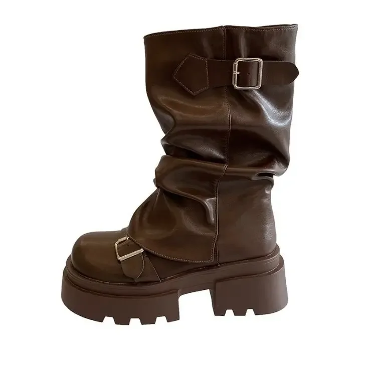 Shoes for Women Mid-Calf Women's Boots Platform Modern Boots Women Belt Buckle S