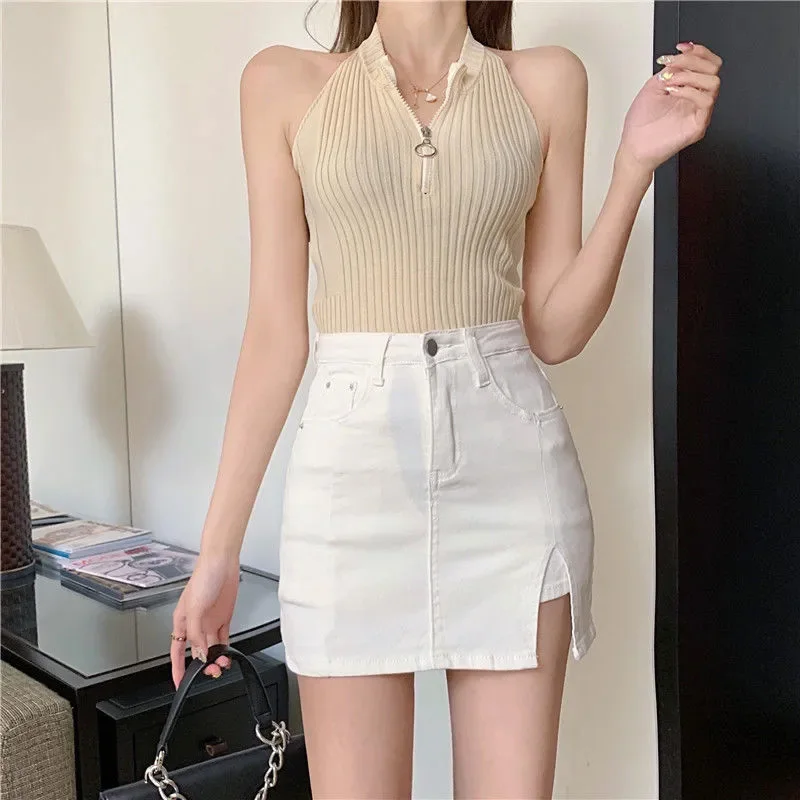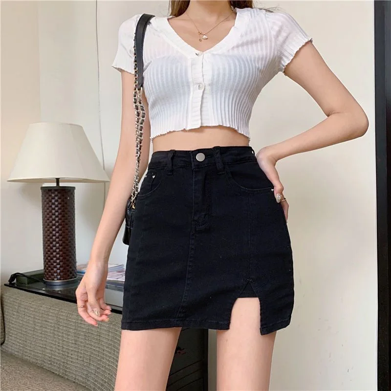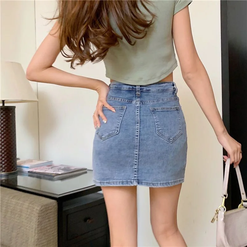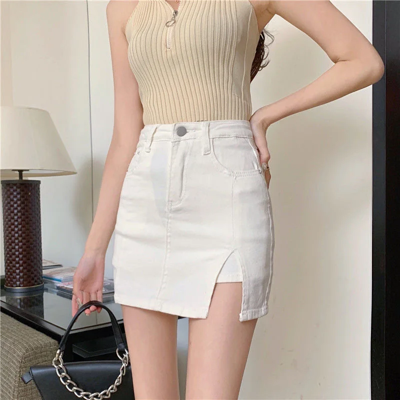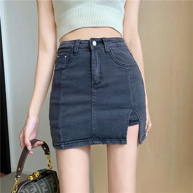 Split Denim Skirts Women High Waist Elastic Sexy Slim Mini Skirt Summer Fashion