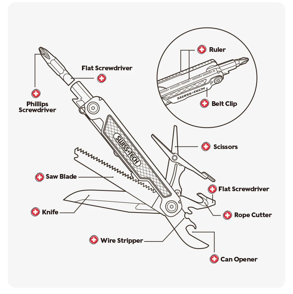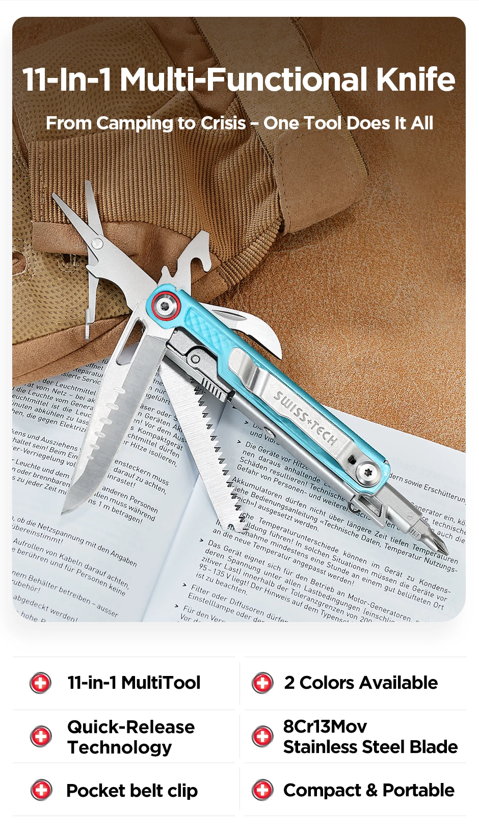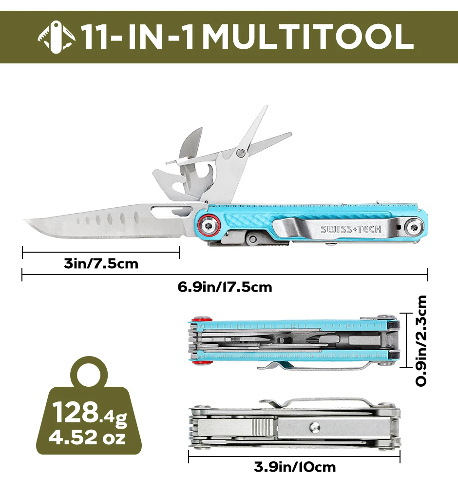 SWISS TECH 11 in 1 Multitool EDC Outdoor Survival Multi-function Tools with Scis