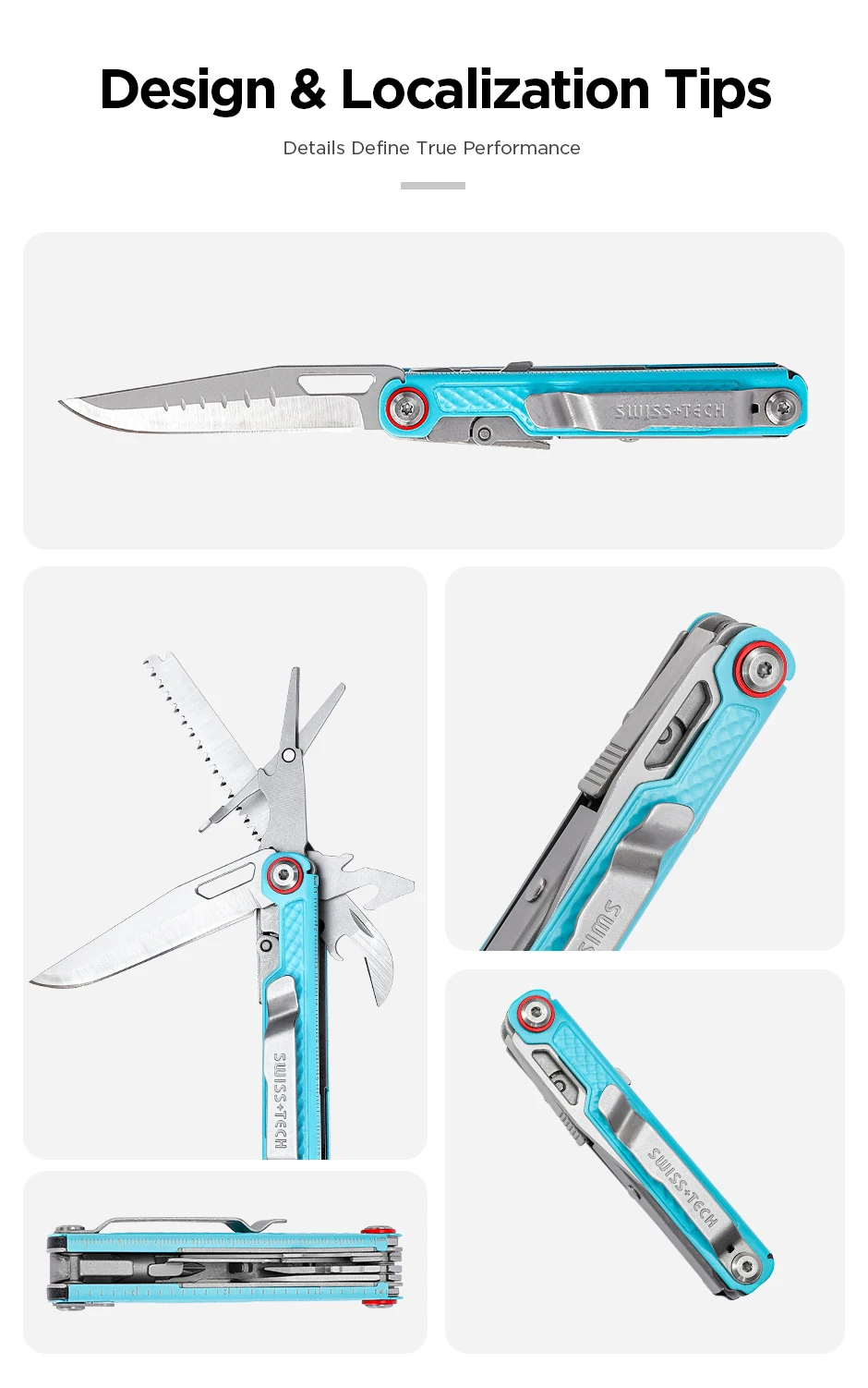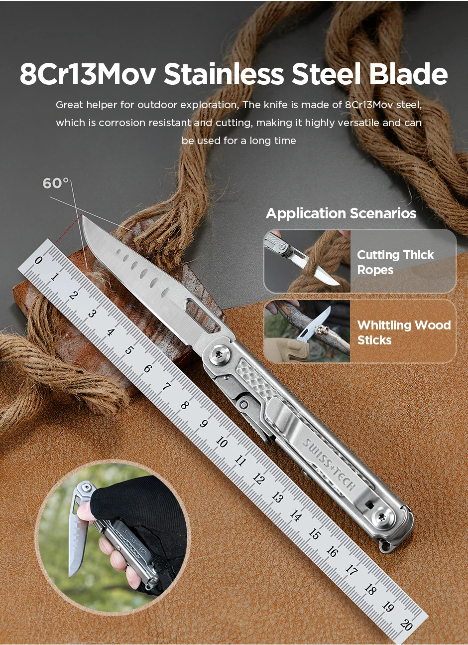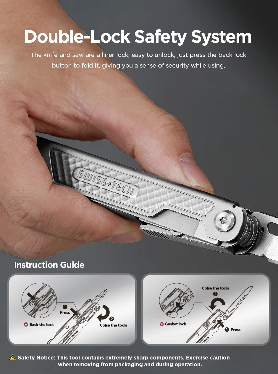 SWISS TECH 11 in 1 Multitool EDC Outdoor Survival Multi-function Tools with Scis