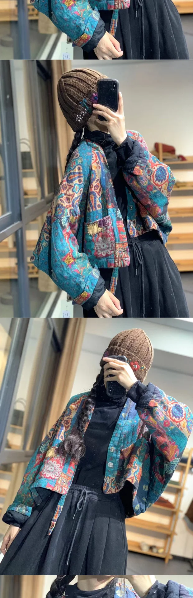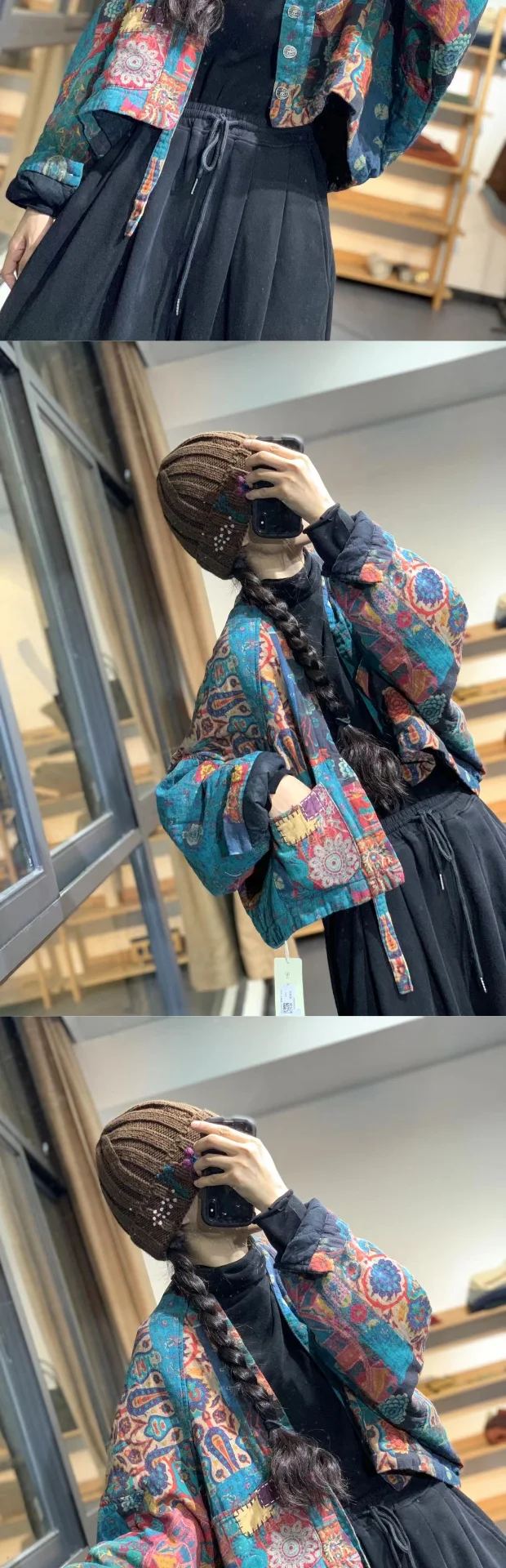 Featuring a unique national style print, this coat adds a touch of cultural elegance to your wardrobe.