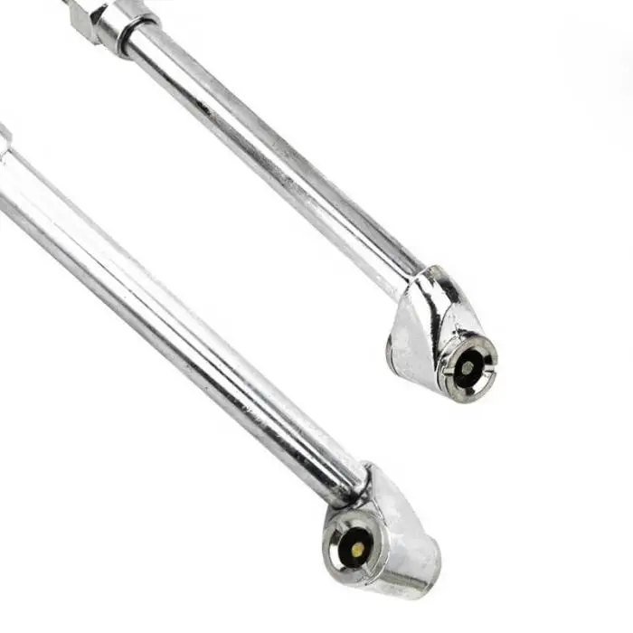 Double sided for easy inflation of tires on vehicles with double axles (trucks & large) as you can reach the inner valve.