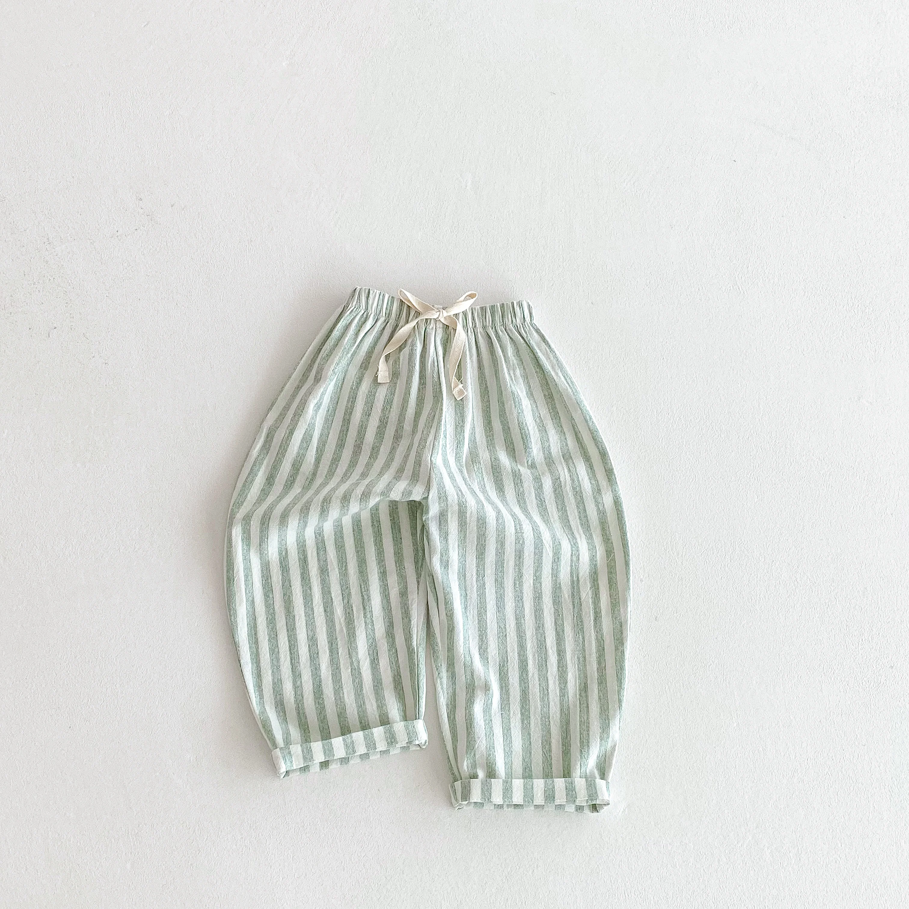 Vintage linen cotton stripe pants for boys casual pocket design elastics waist pants for toddler girls clothing children trousers baby stuff