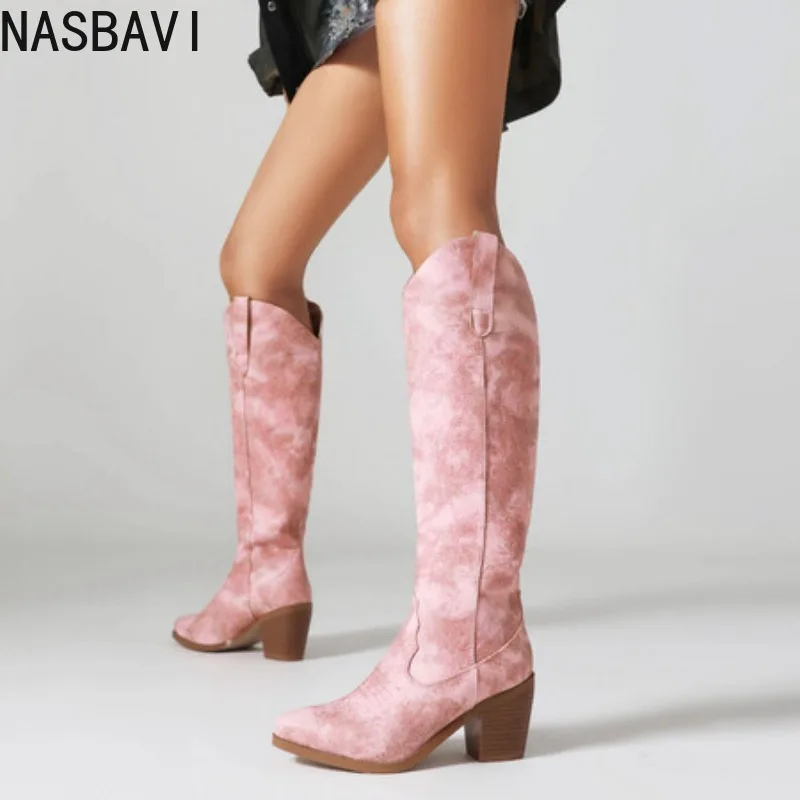 Western Women's Winter Knee High Boots Fashion Embroidery Cowboy Cowgrils Boot W