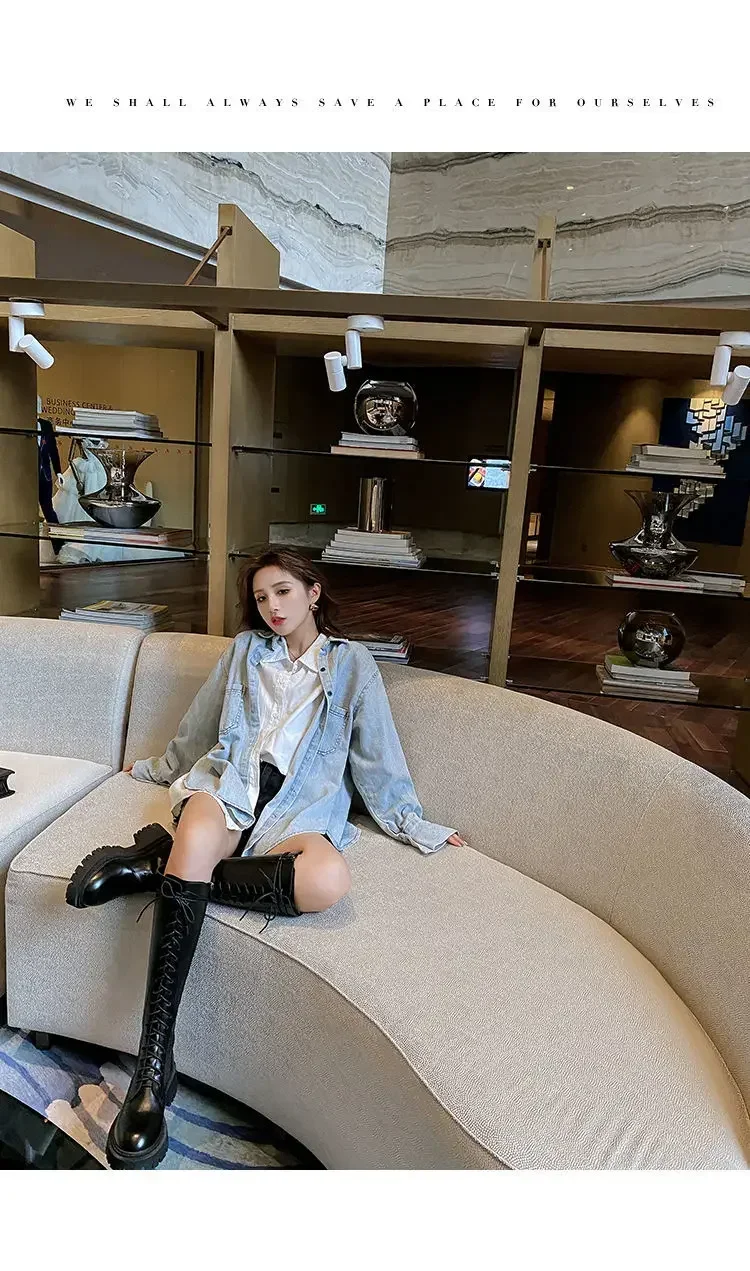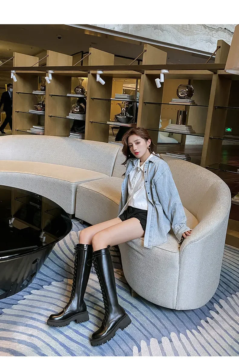 Winter Boots Women Knee High Boots Platform Pu Leather Increasing Long Female La