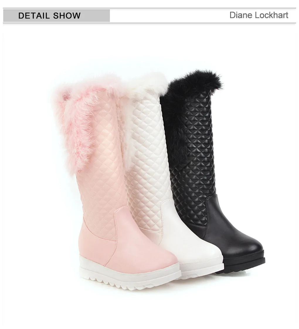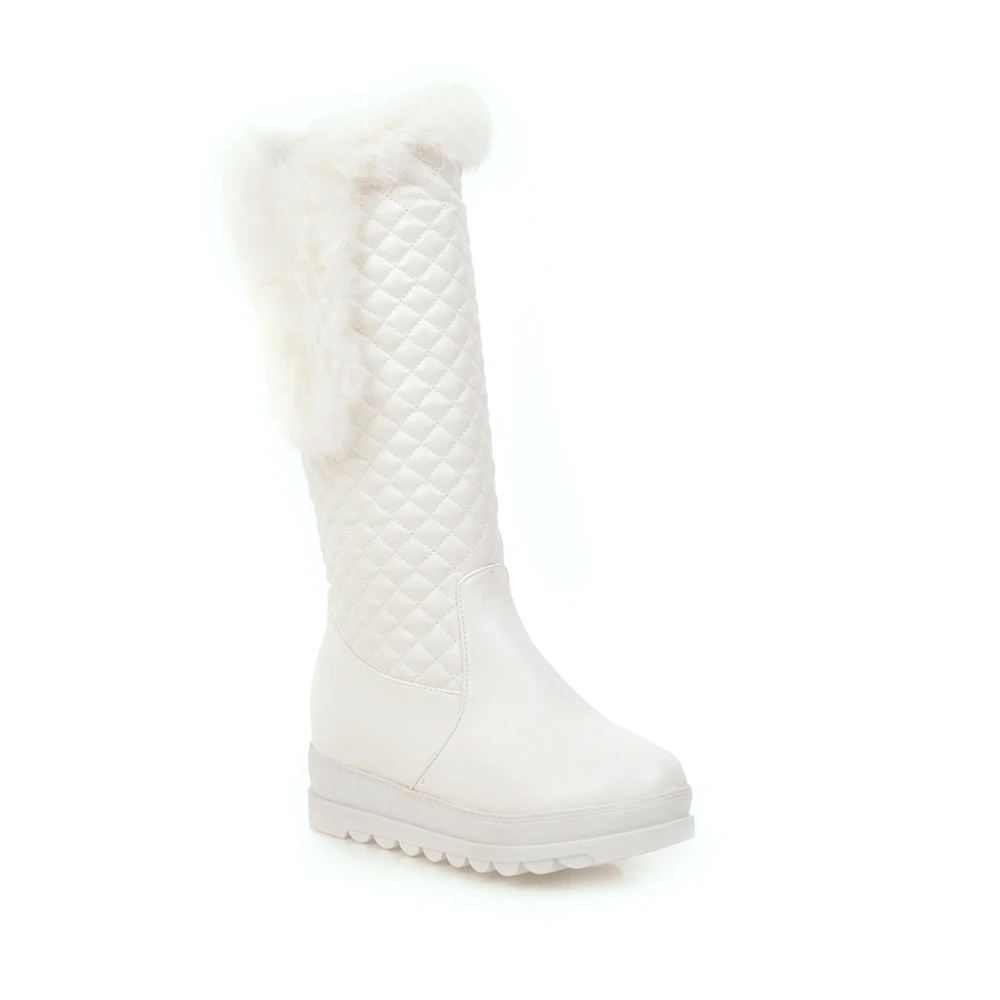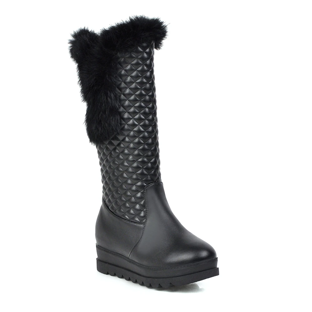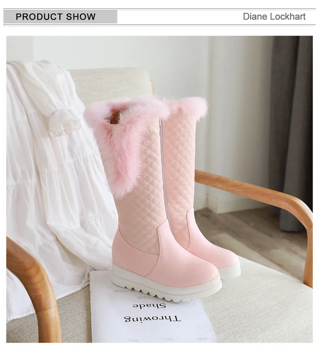 Winter Warm Fur Knee High Boots Womens Platform Snow Boots High Heels Female Pad