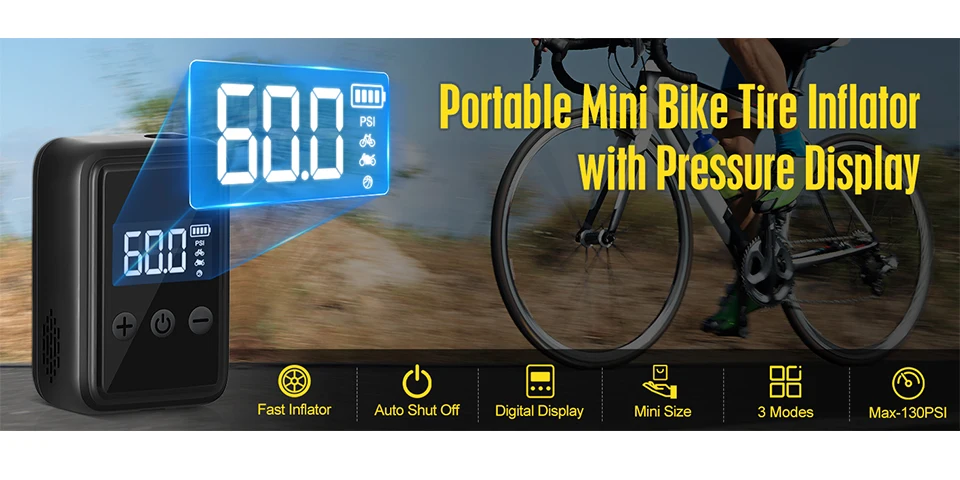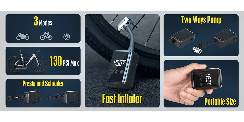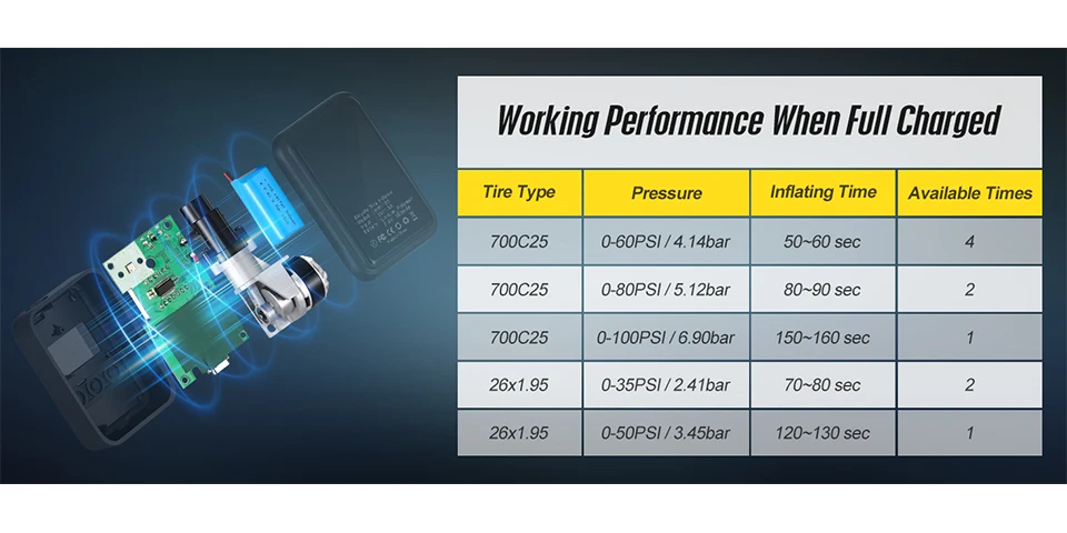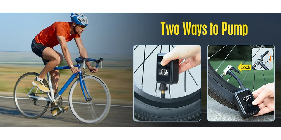 Wireless car tyre inflation pump with digital display, USB charging, precise det