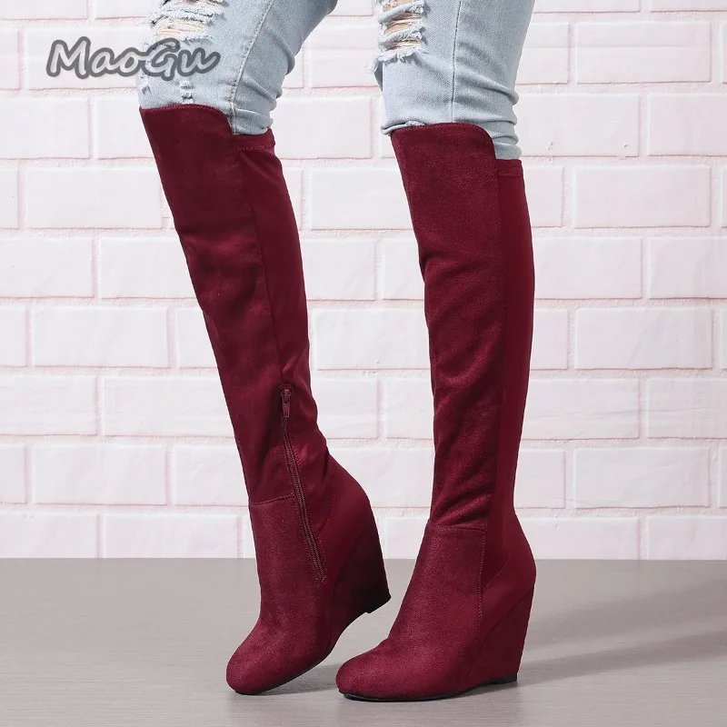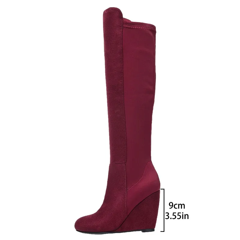 Women Autumn Winter Knee High Boots Wedge Boots for Women Plus Size Suede Elasti
