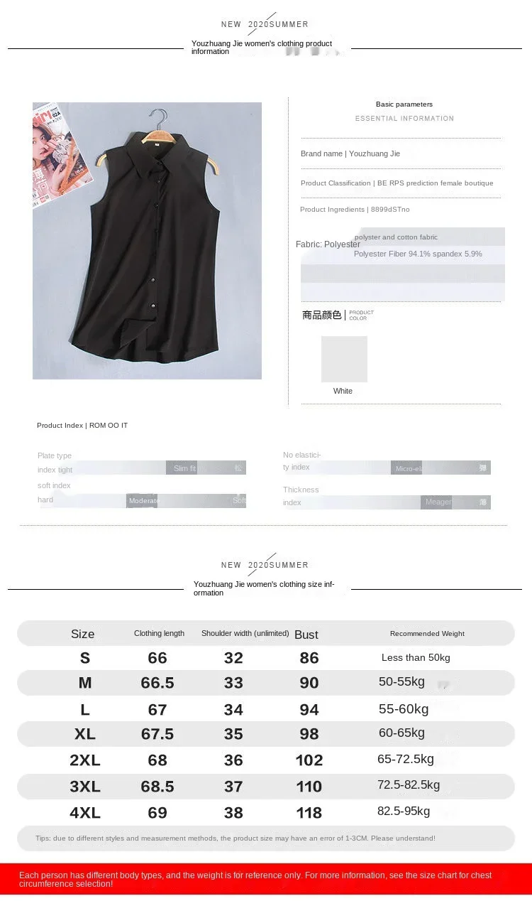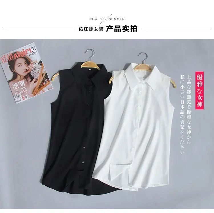 Women Blouse Summer Sleeveless Chiffon Shirt White Shirt Vest Blusas Ropa De Mu