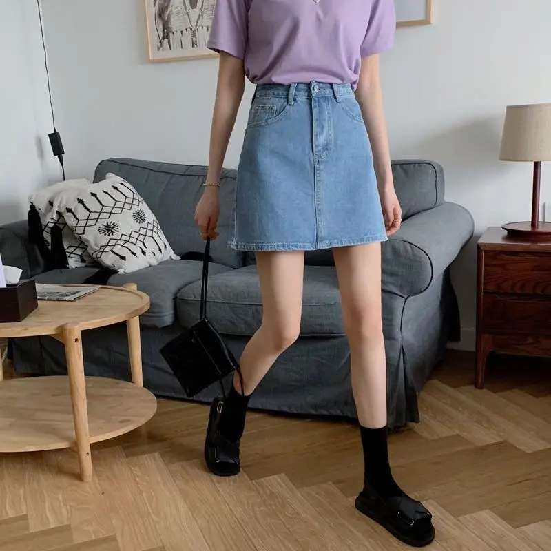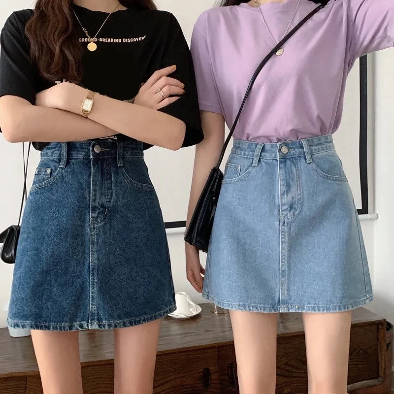 Women Denim Skirts New 2024 Fashion Solid Color Summer Autumn Mini Skirts High W