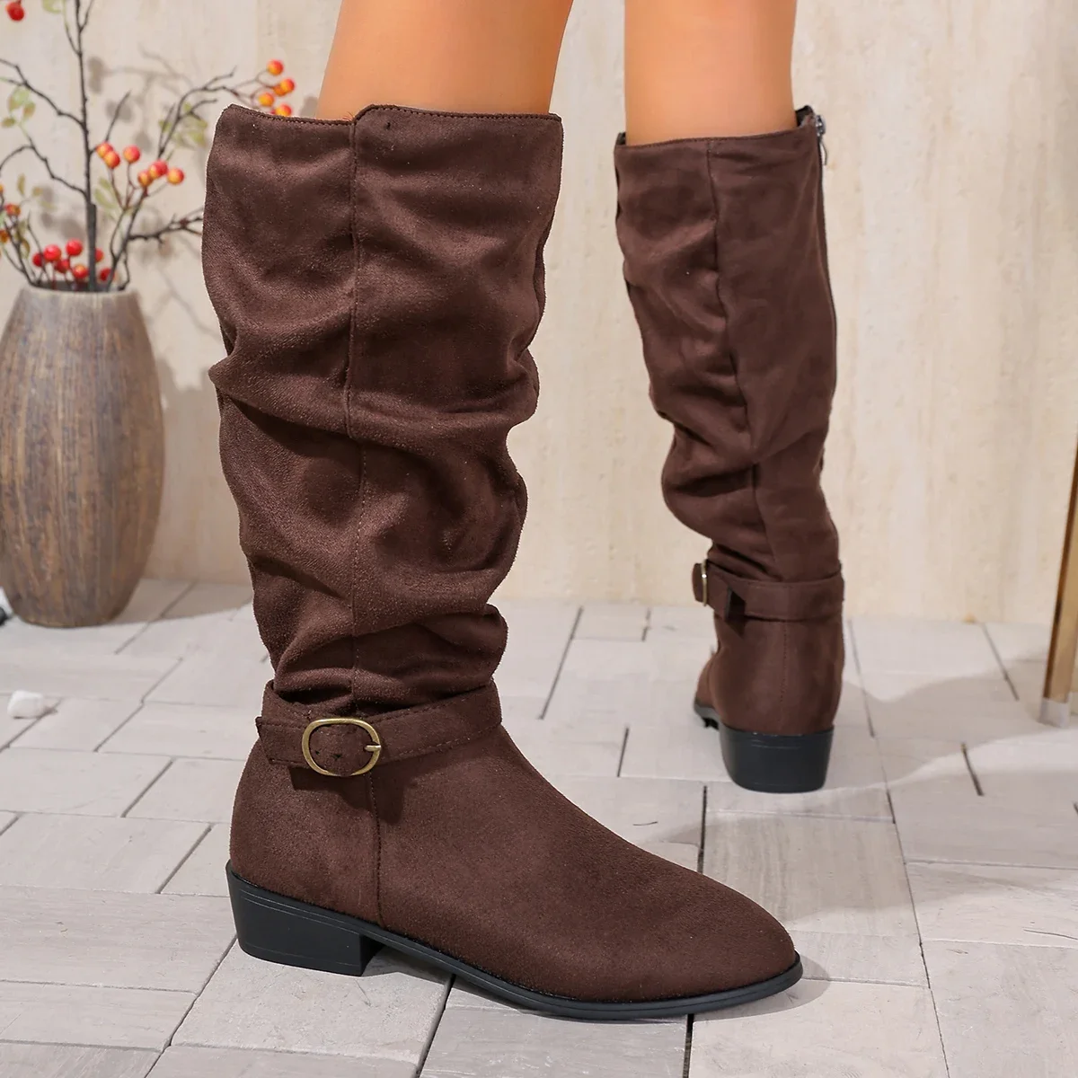 Women Knee High Boots Autumn Winter Female Shoes Fashion Female Slip-on Folds Lo