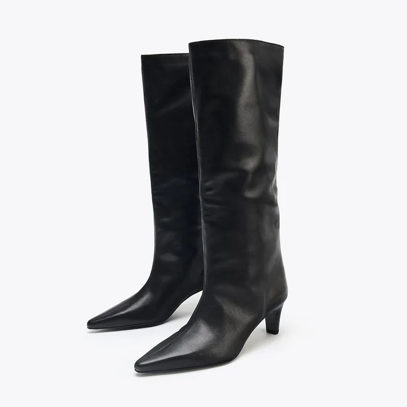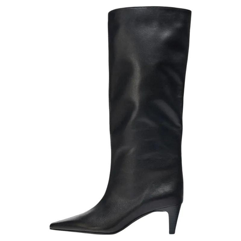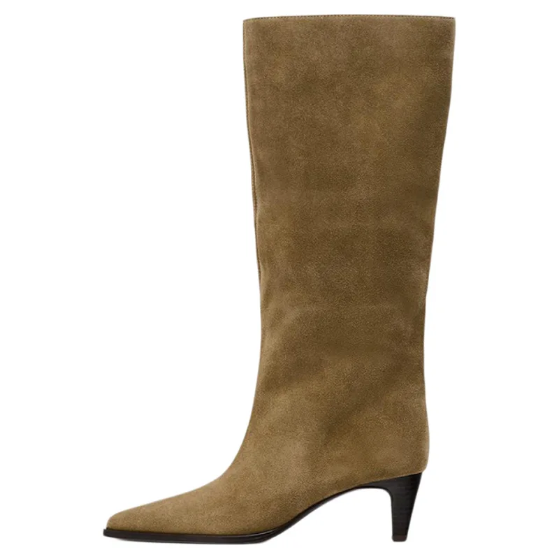 Women's Cow Suede Knee High Boots Pointed Toe Kitten Heel Elegant Timeless Perf
