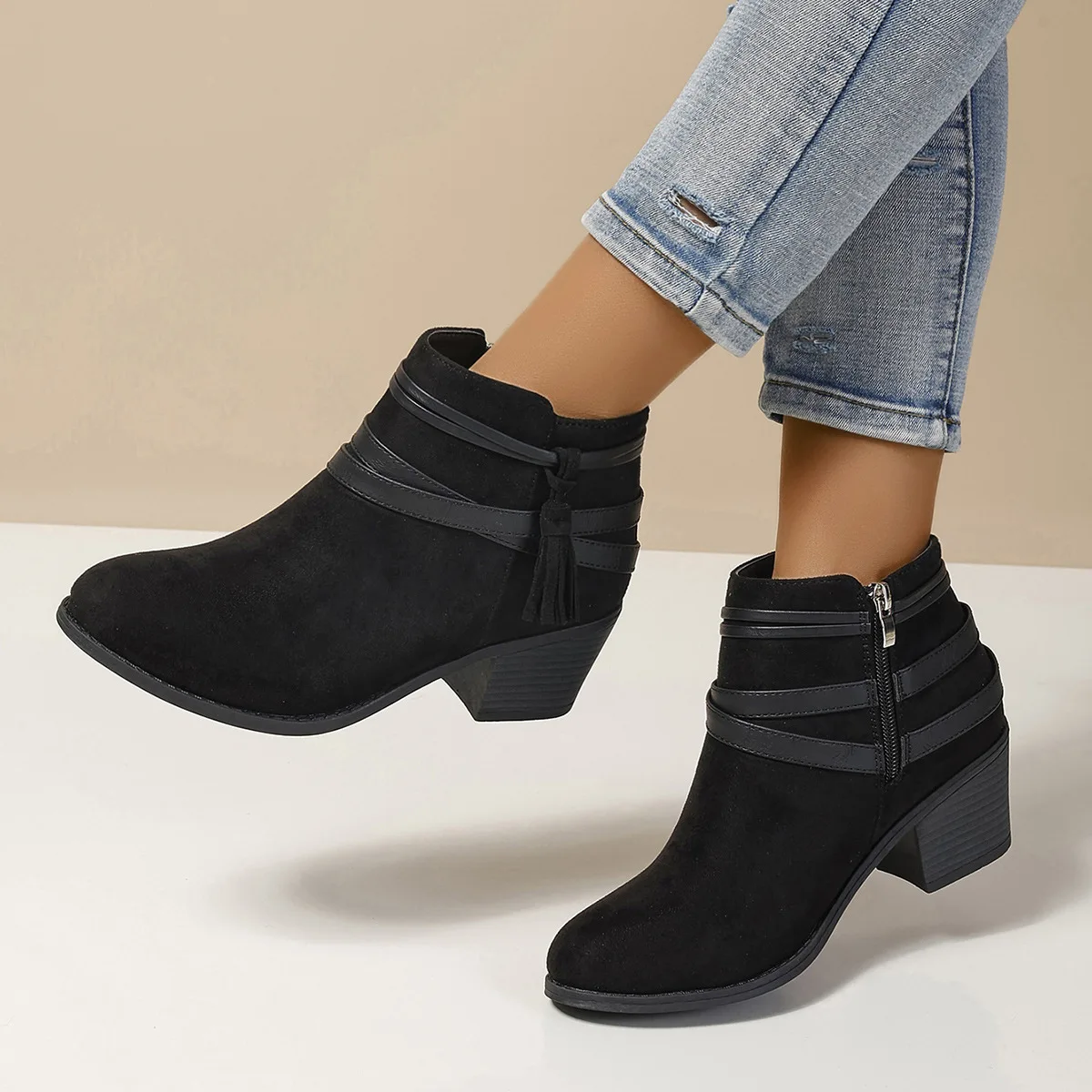 Women's High Heel Ankle Boots 2025 Fall Winter Pointed Toe Suede Boots Zip Up Mi