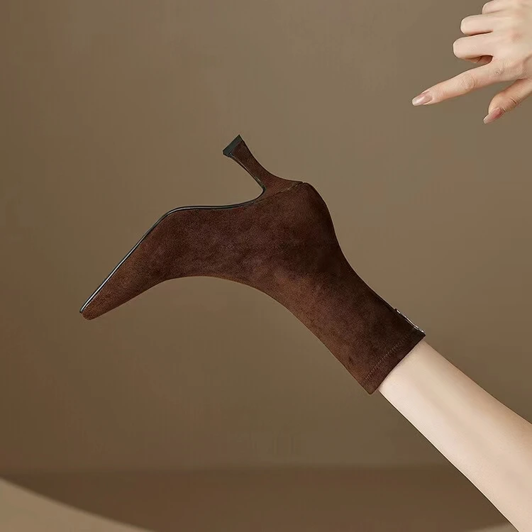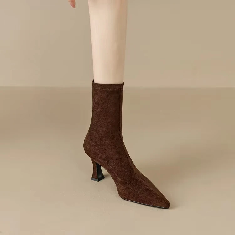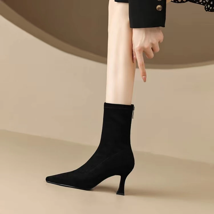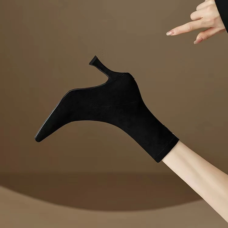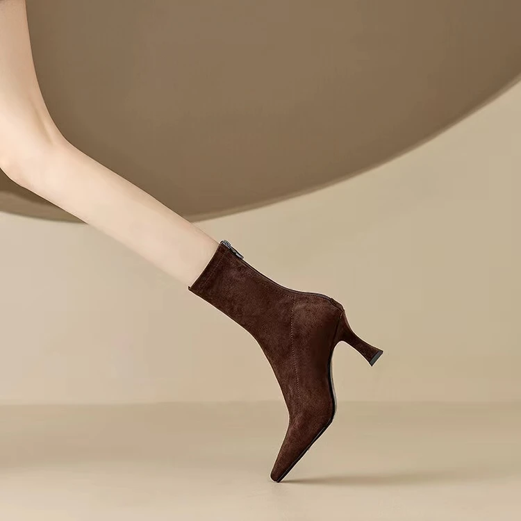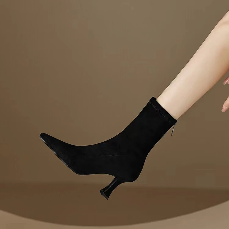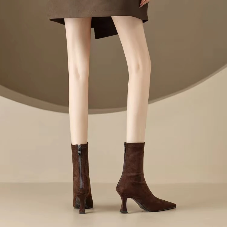 Women's high-heeled ankle boots for autumn and winter, versatile, French style,