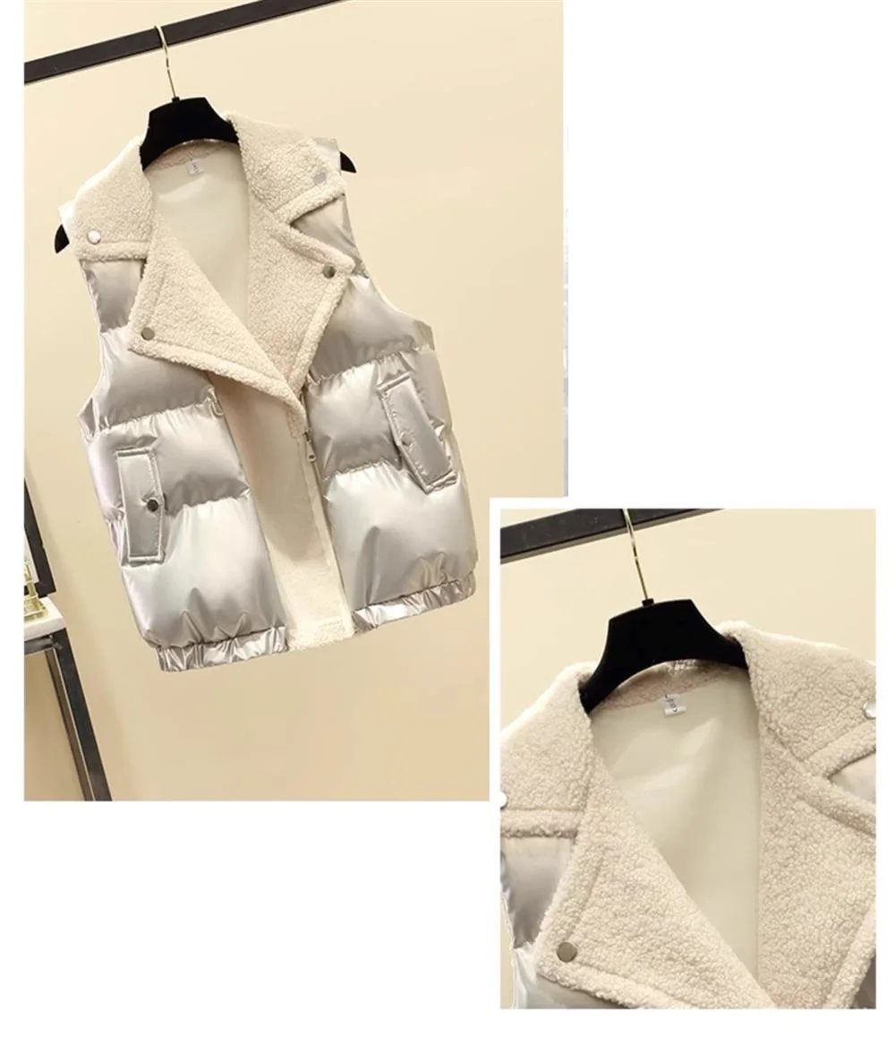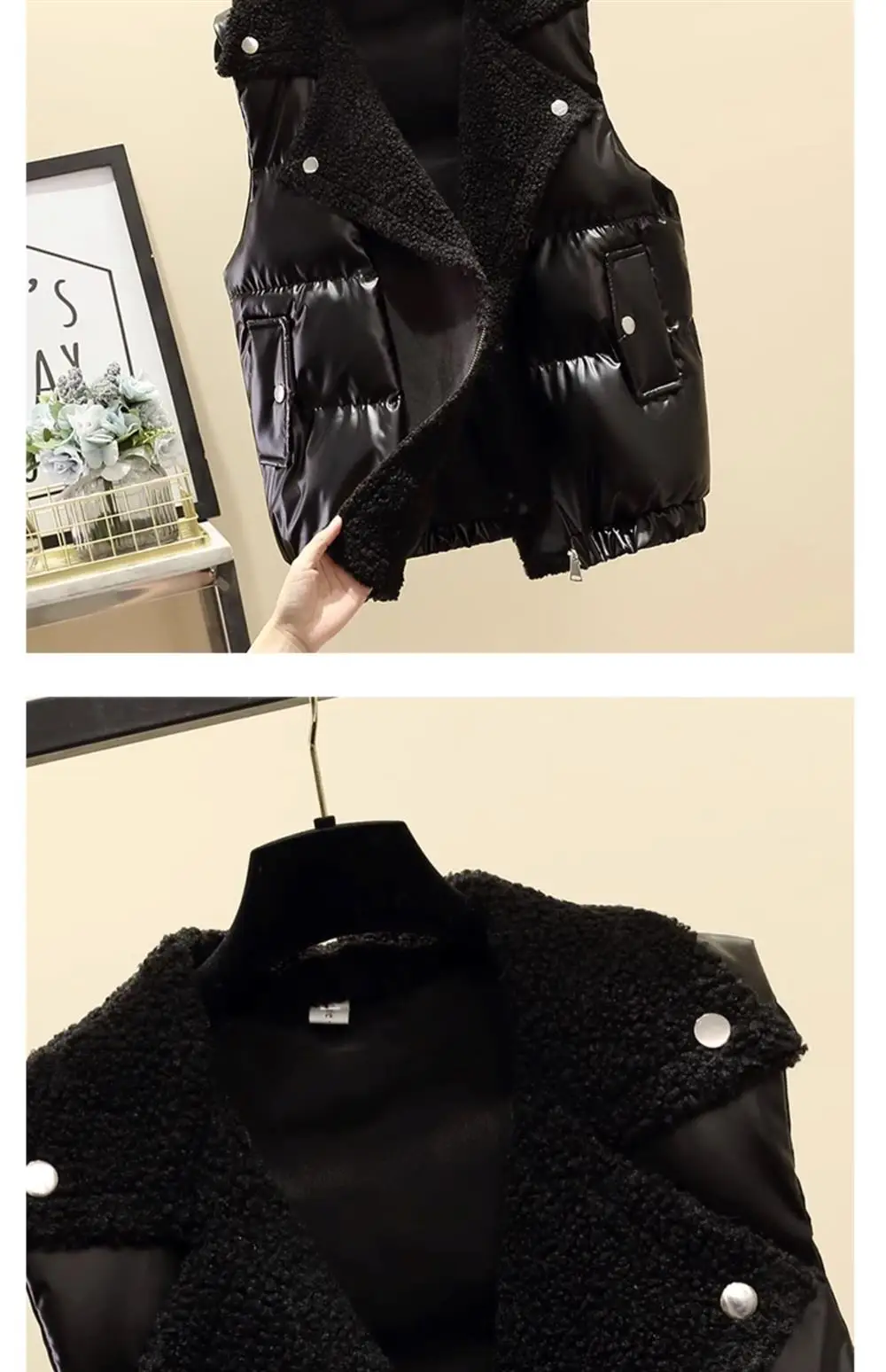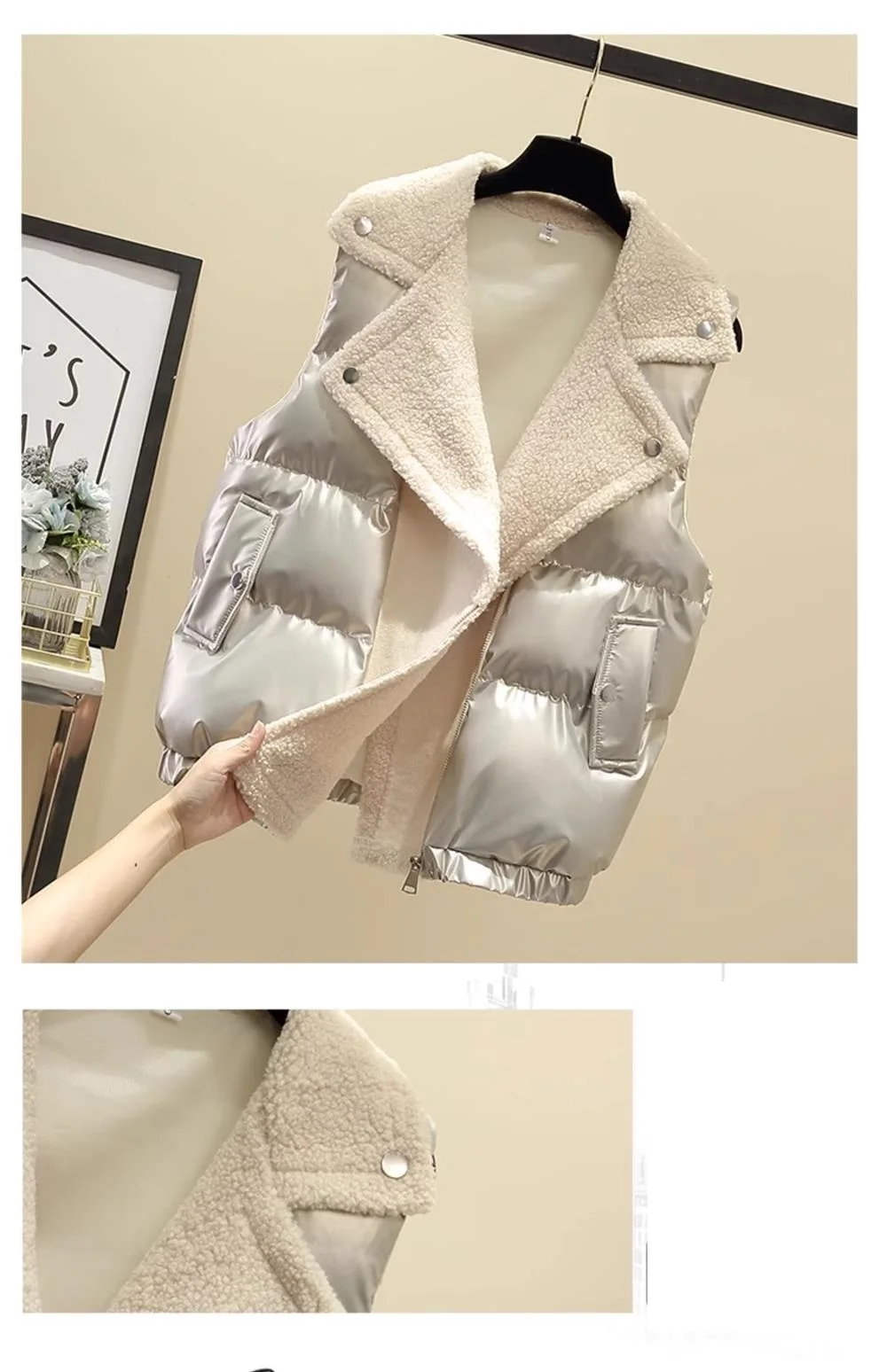 Women's Thick Wool Lamb Vest Sleeveless Coat Warm Vest Cotton Vests Elegant Vest