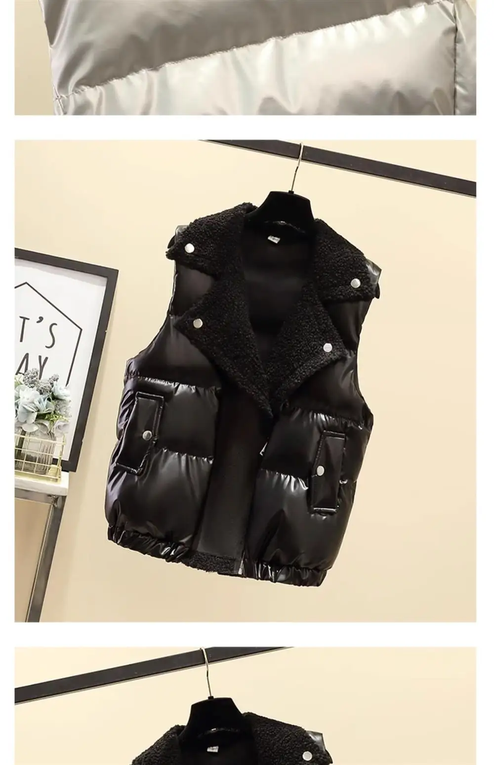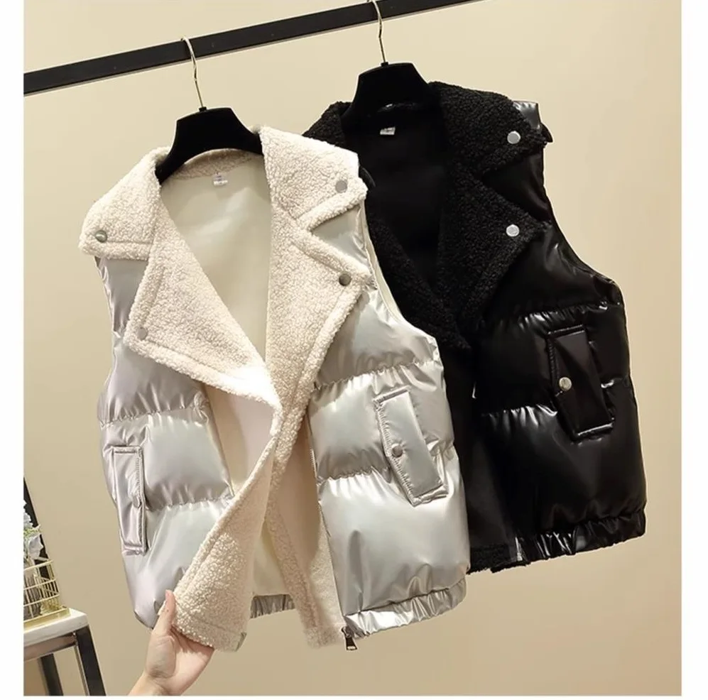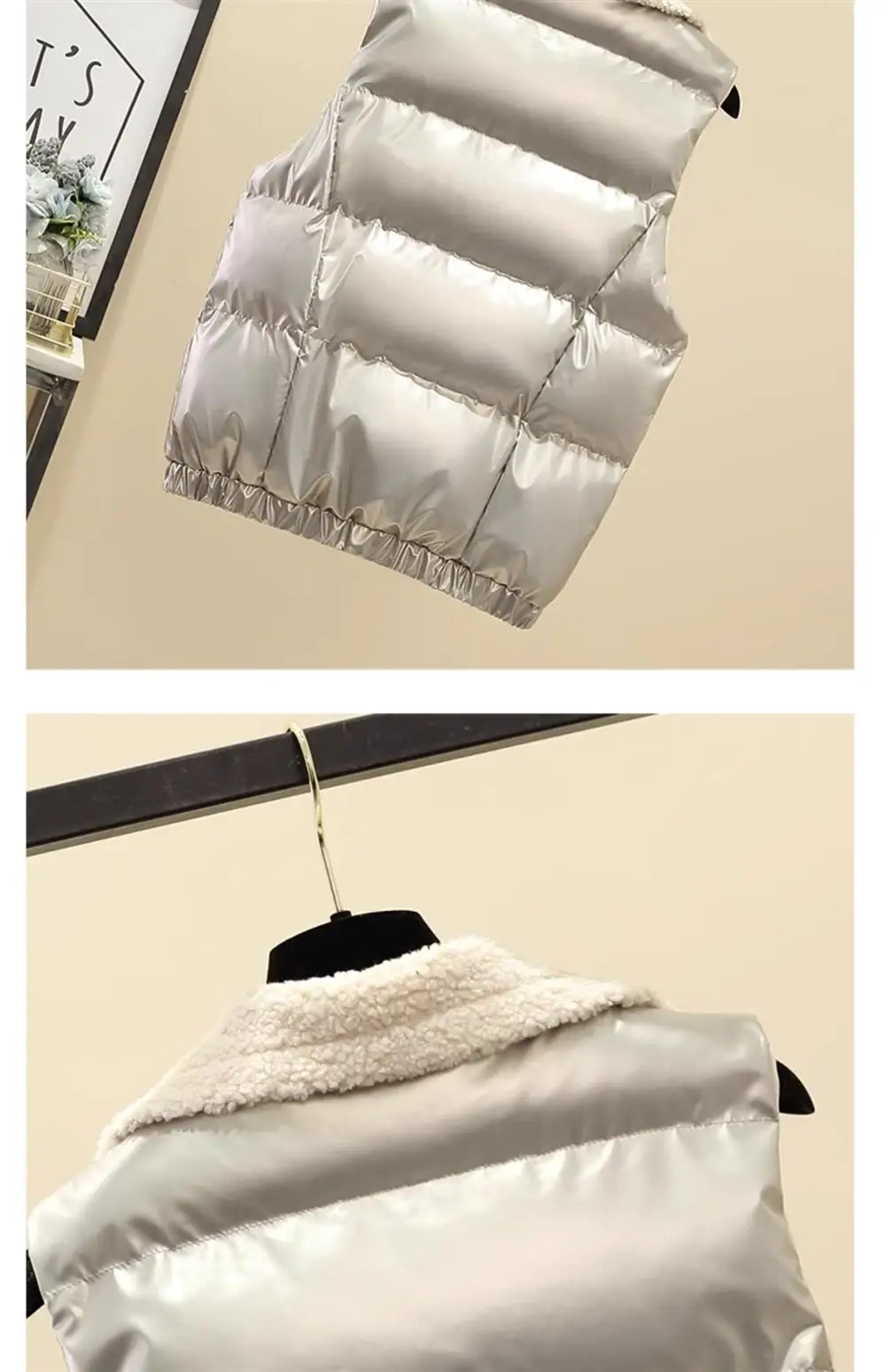 Women's Thick Wool Lamb Vest Sleeveless Coat Warm Vest Cotton Vests Elegant Vest