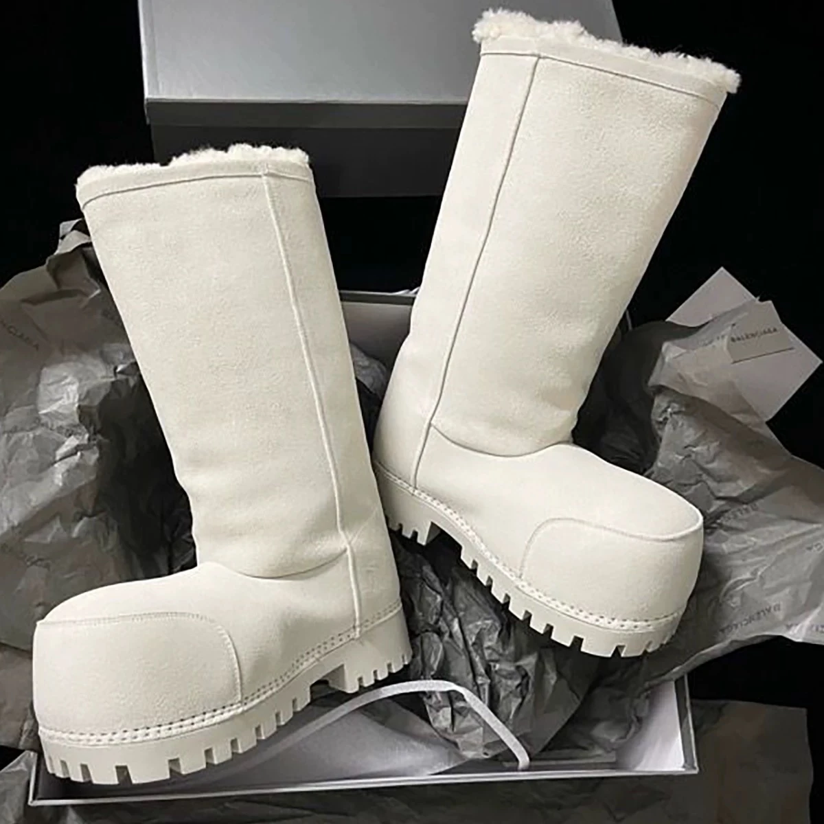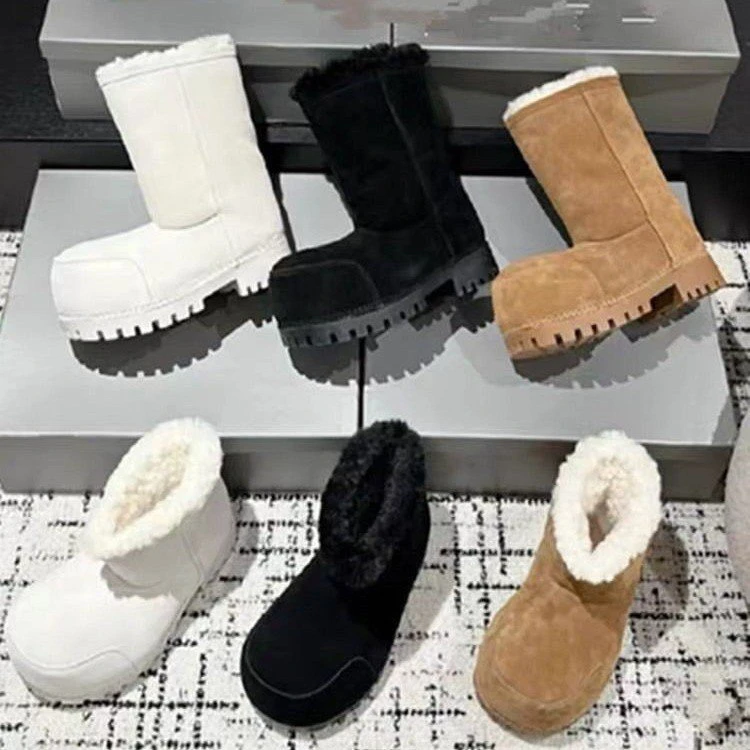 Women's Winter Faion Boots Thi Bot eepskin Coat Large Head Snow Boots Warm Mid-C