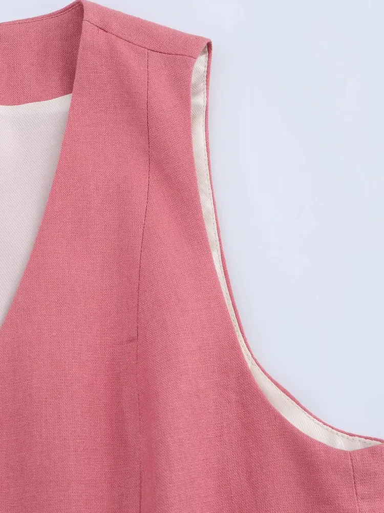 Women Summer Linen 2-Pieces Sets 2025 Casual Solid Vests Coats and Shorts Female