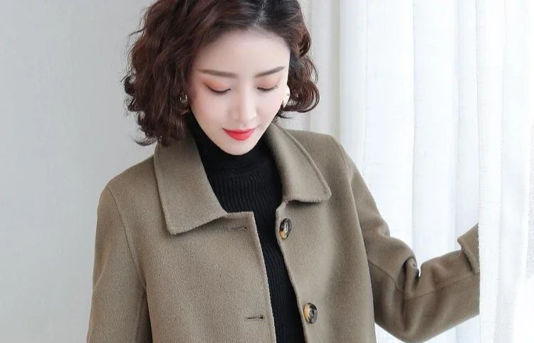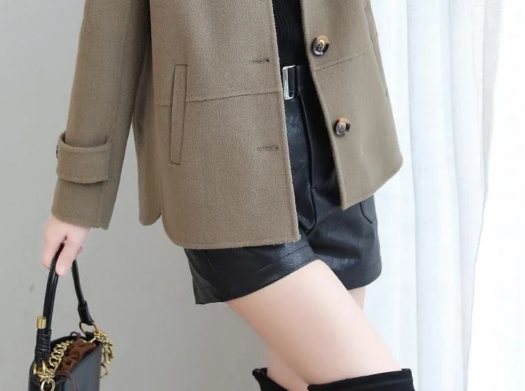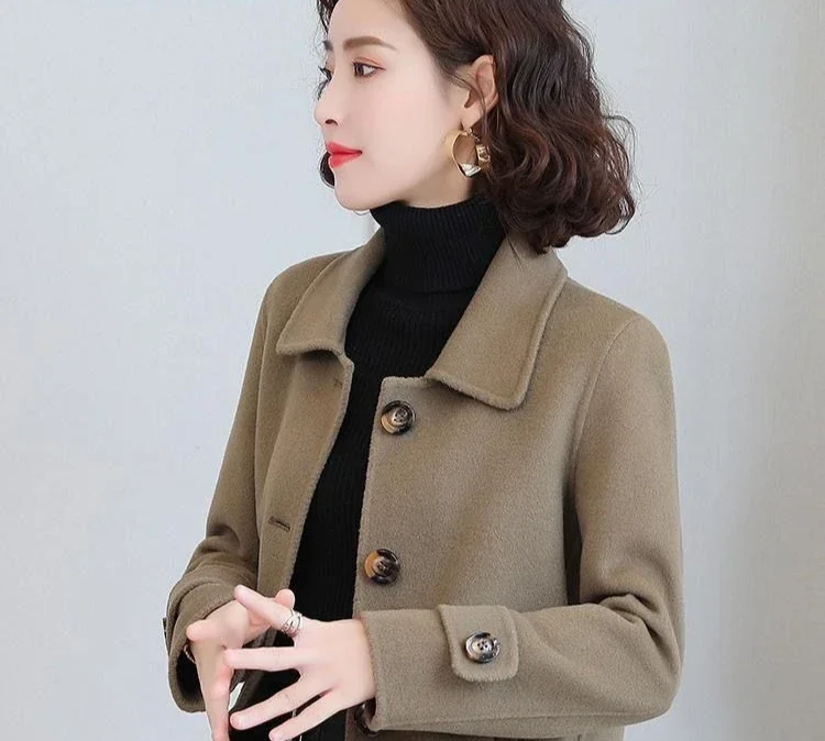 Wool Blend Coat for Women Plain Half Short New In Mixtures Jacket Woman Autumn H